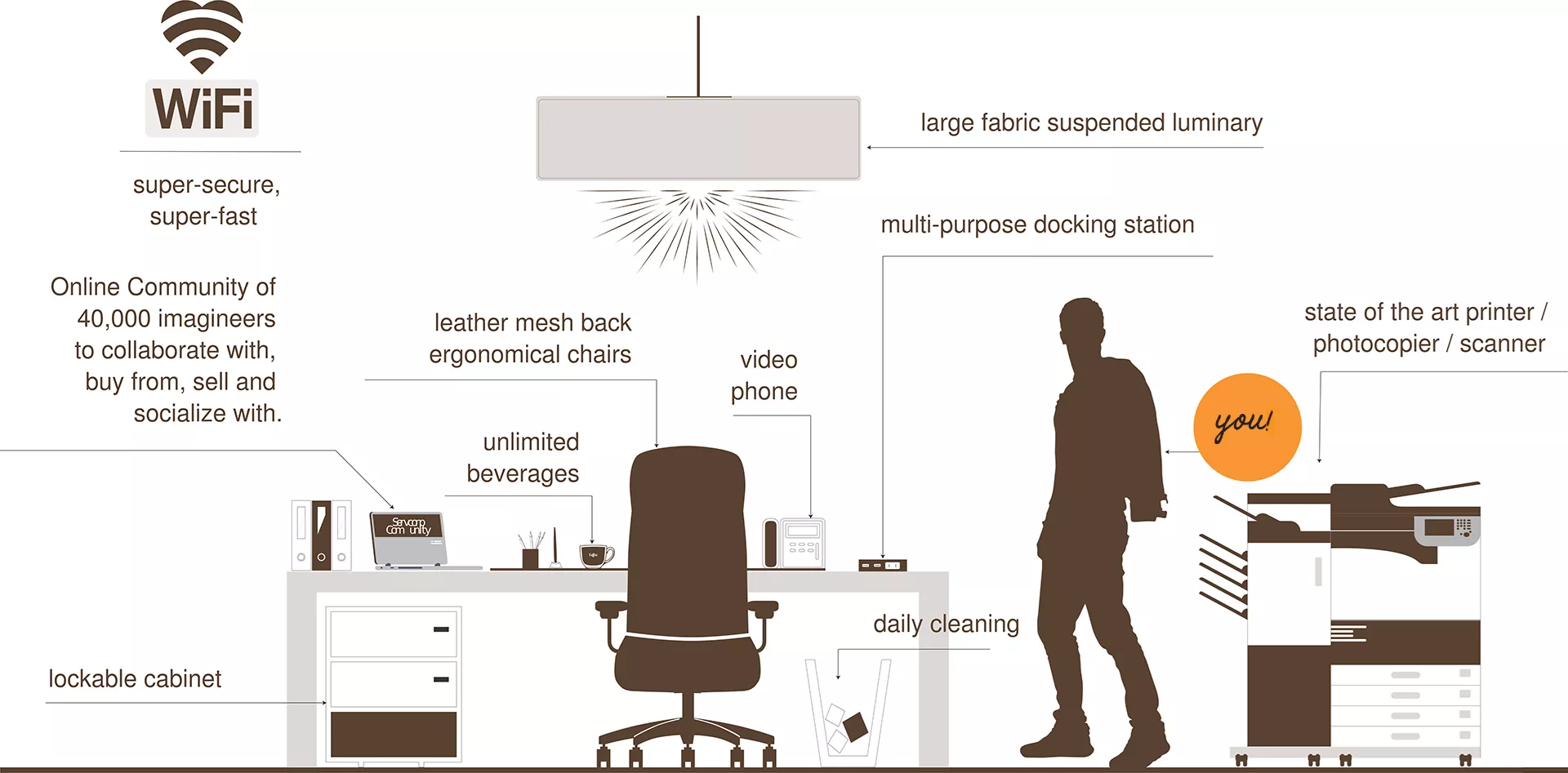 We understand each business has specific needs to operate at its full potential. Servcorp’s Coworking spaces are designed to support your business needs and make your business a success.